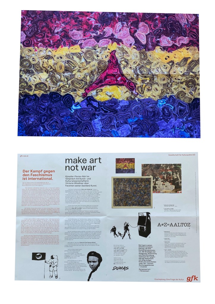 make art not war 0 1. Mai 202216. Juli 2023 Verfasst von floriannoerl ansicht04_finalvordruck_2022_a2_quer_plakatfloriannoerlHerunterladen Teilen mit: Klicke, um auf X zu teilen (Wird in neuem Fenster geöffnet) X Klick, um auf Facebook zu teilen (Wird in neuem Fenster geöffnet) Facebook Klicken, um auf WhatsApp zu teilen (Wird in neuem Fenster geöffnet) WhatsApp Klicken, um einem Freund einen Link per E-Mail zu senden (Wird in neuem Fenster geöffnet) E-Mail Gefällt mir Wird geladen … Ähnliche Beiträge