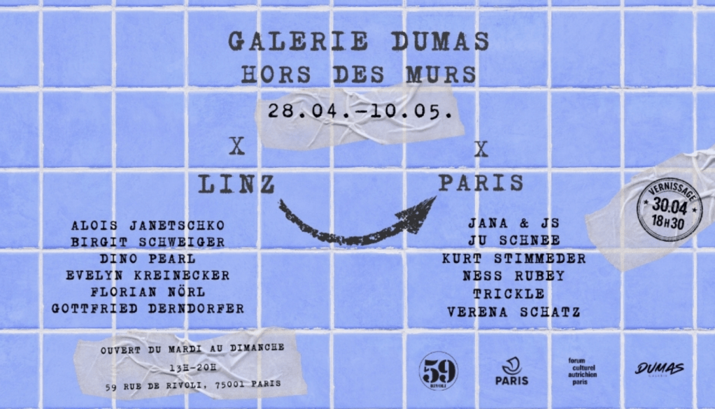 Galeri Dumas in Paris 28.04.-10.05. Vernissage: 30.04.2026: https://galeriedumas.com/galerie-dumas-hors-des-murs-2026-galerie-dumas-linz/ + https://galeriedumas.com/portfolio-item/galerie-dumas-hors-des-murs-2026-paris-galerie-dumas-linz/